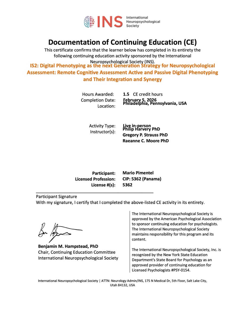 - USMA. Professor of Master's Degree. Pediatric Neuropsychology and Neuropsychological Assessment.