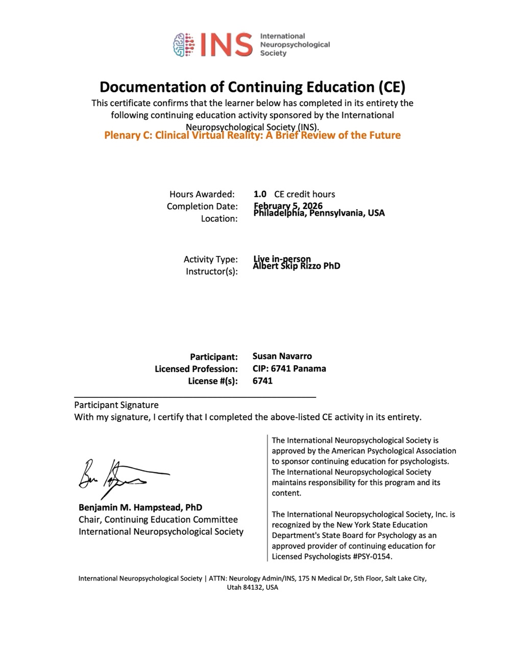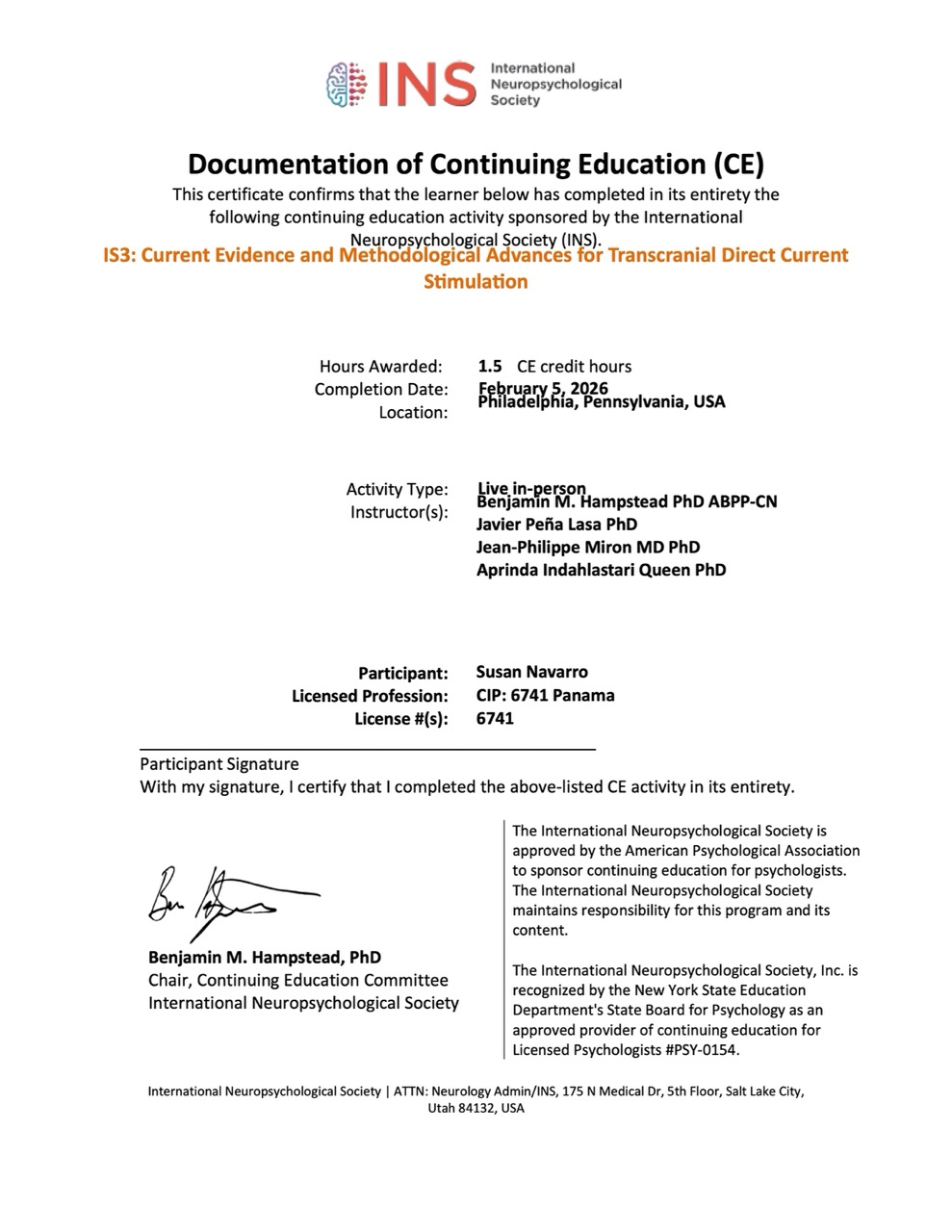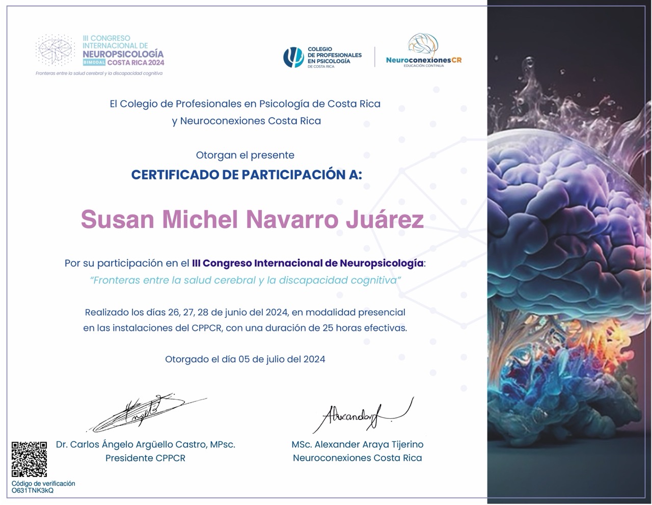 III Congreso Internacional de Neuropsicología: "Fronteras entre la salud cerebral y la discapacidad cognitiva" – San José, Costa Rica (Junio 2024).
