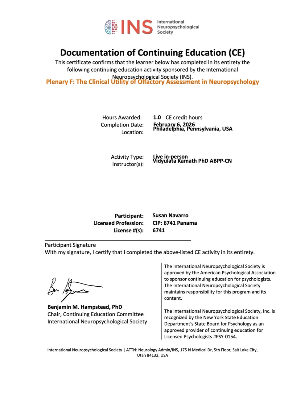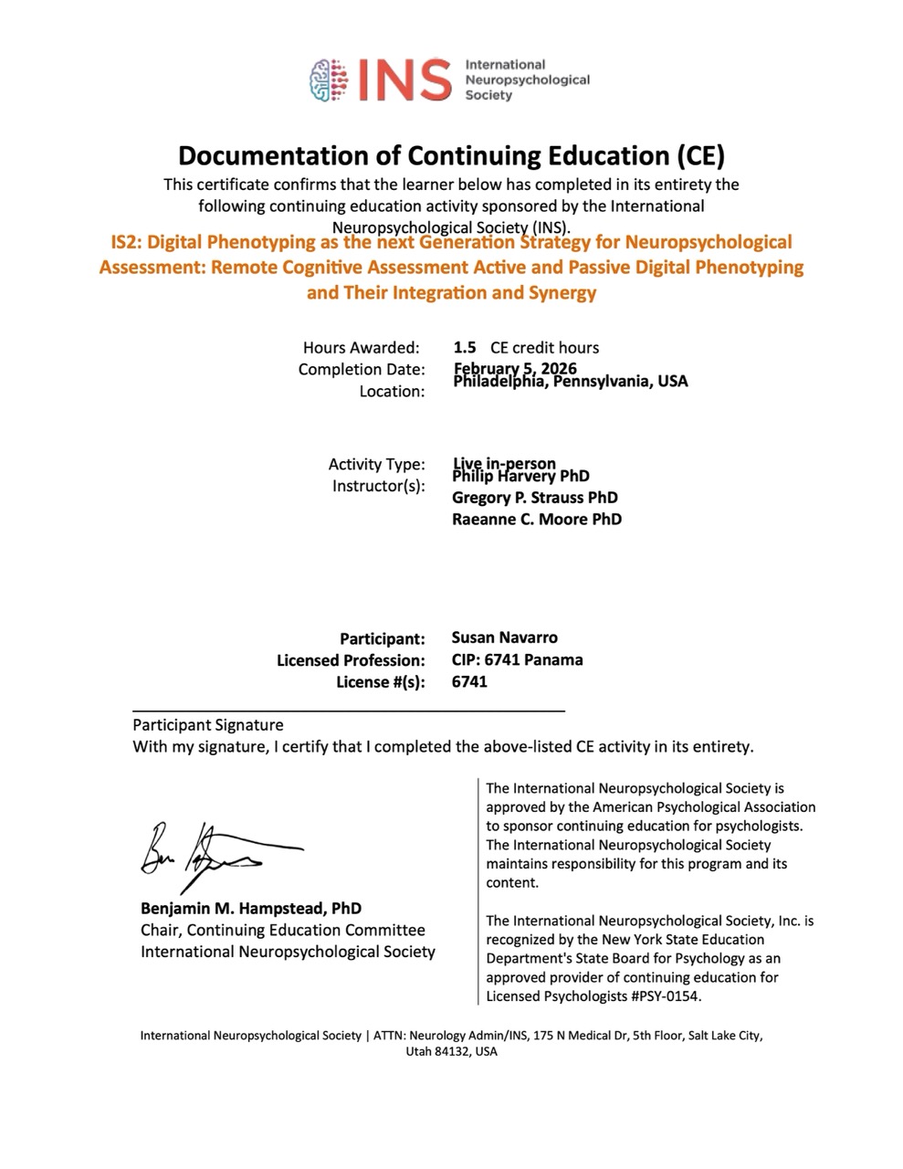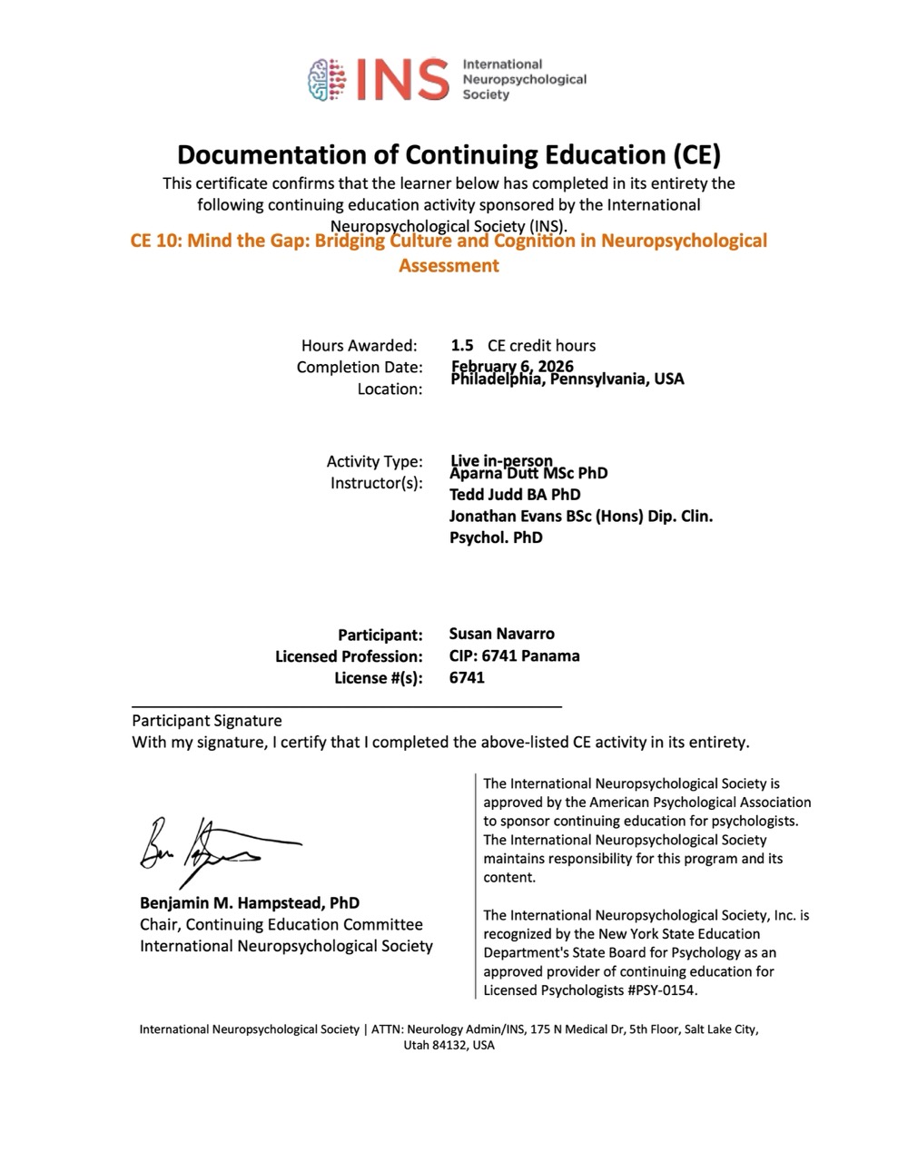III Congreso Internacional de Neuropsicología: "Fronteras entre la salud cerebral y la discapacidad cognitiva" – San José, Costa Rica (Junio 2024).